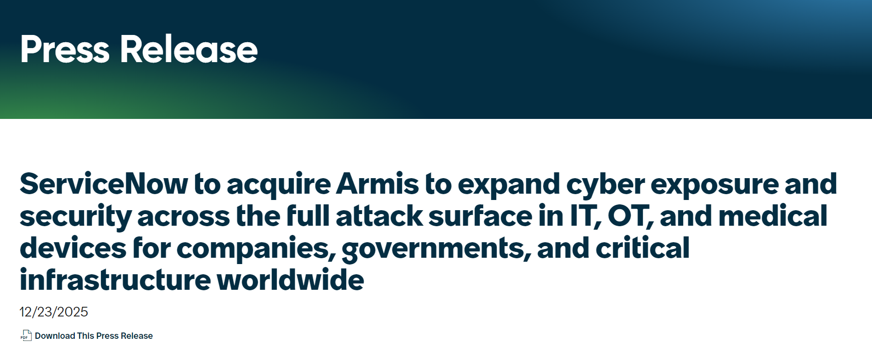 ServiceNow计划将Armis的多项安全功能——包括设备扫描、威胁检测以及漏洞优先级排序,整合至其AI驱动的平台之中。在网络攻击手段日益复杂、从微软到联合健康集团等大型企业频频中招的背景下,这被视为一项关键竞争优势。