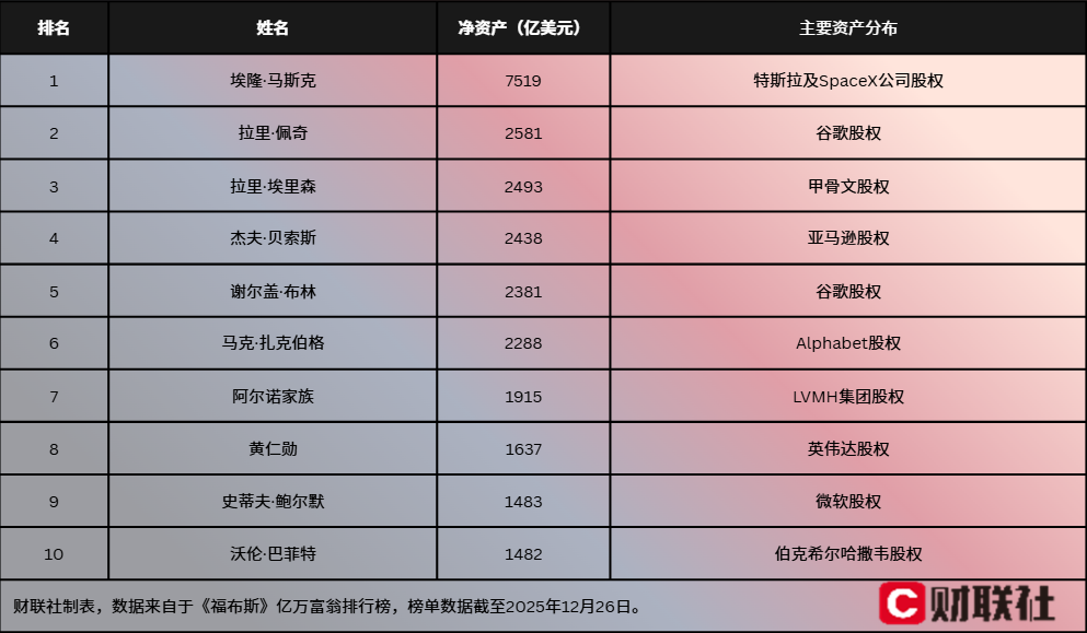2025年,得益于人工智能和科技行业的蓬勃发展,全球亿万富翁群体实现了创纪录的财富增长。