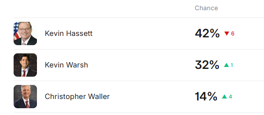 目前,三位“决赛圈”选手分别是白宫国家经济委员会主任凯文·哈西特、美联储前理事凯文·沃什,以及特朗普第一任期时提名的美联储理事克里斯托弗·沃勒。