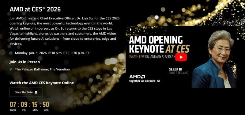 随着2026年元旦将至,资本市场将目光聚焦于一年一度的开年科技大秀——拉斯维加斯消费电子CES展会。英伟达与AMD将在CES上聚焦AI硬件的最新进展。此外,CES也将展示AI赋能的机器人、智能眼镜等消费产品。
