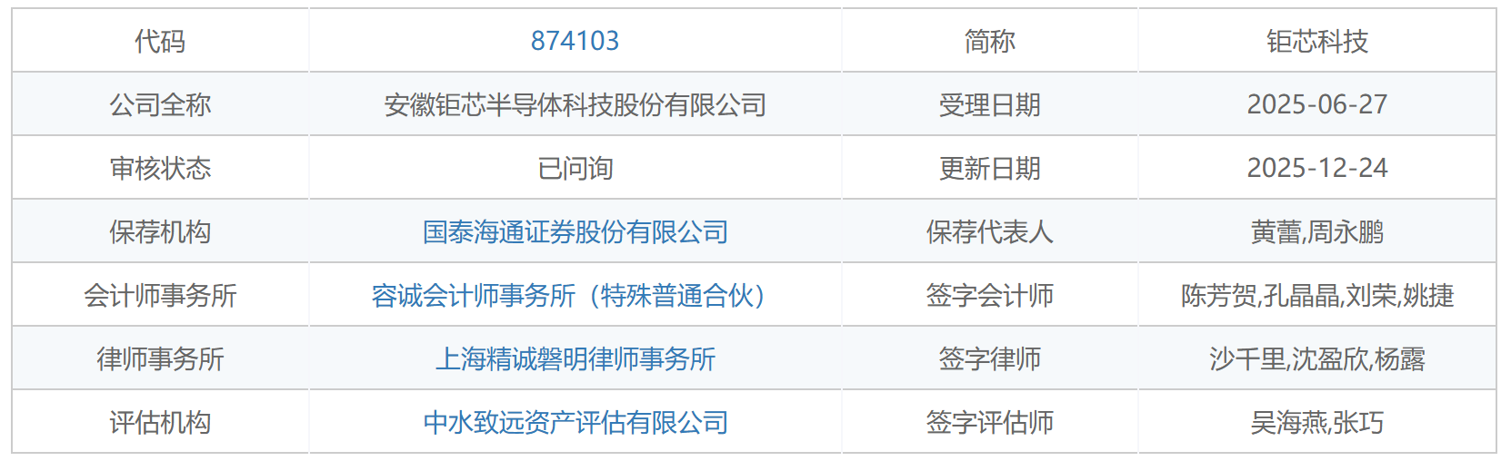 12月24日,据北交所官网,安徽钜芯半导体科技股份有限公司(下称“钜芯科技”)回复第二轮问询,公司经营稳定性、毛利率下滑风险、低产能利用率下募资扩产等受到监管层的进一步关切。