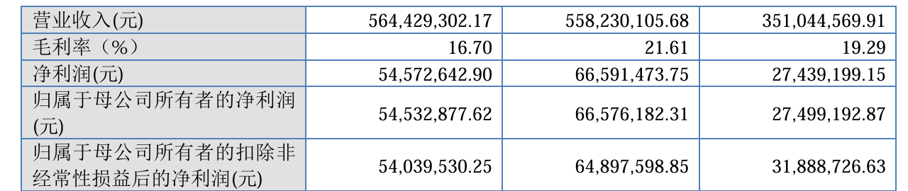 业绩方面,2022年至2024年,钜芯科技营业收入分别为3.51亿元、5.58亿元和5.64亿元,净利润分别为2743.92万元、6659.15万元和5457.26万元,毛利率分别为19.29%、21.61%和16.7%。