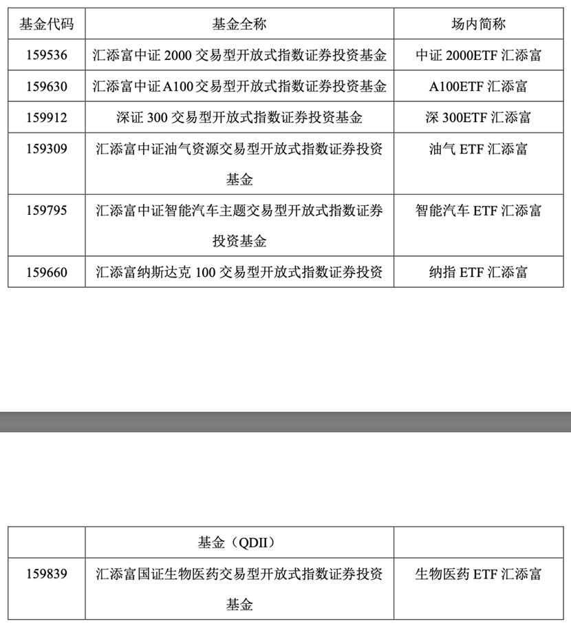汇添富基金也于同日公告修改上交所上市的10只ETF及深交所上市的7只ETF场内扩位简称。