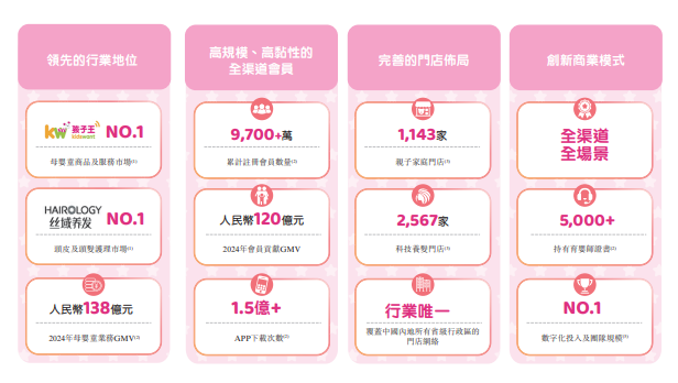 孩子王拟在A+H两地上市,招股书显示其拥有1143家亲子家庭门店,2024年母婴童业务GMV达138亿元人民币。公司创始人汪建国提出“扩品类、扩赛道、扩业态”,并已完成对乐友国际和丝域集团的全资控股。