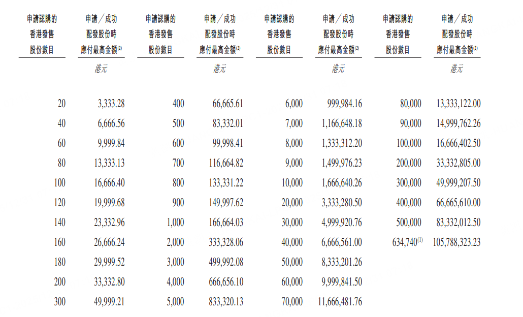 乙组门槛为4万股,申购所需资金约666.65万港元。