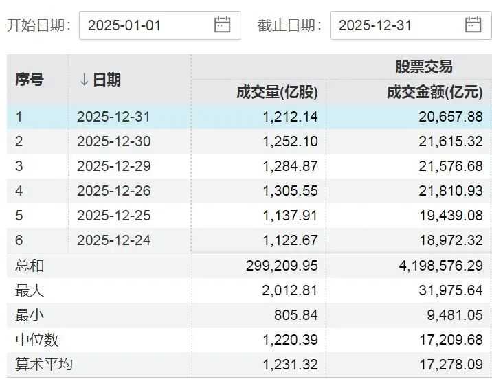 2025年,A股市场表现良好,成交火爆。数据显示,截至12月31日收盘,A股全年成交额达419.86万亿元,日均成交额达1.73万亿元,均创历史新高。