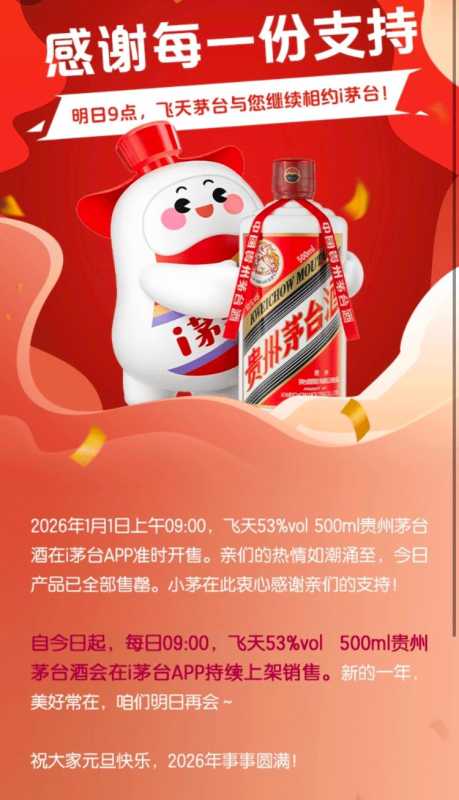 业内人士认为,这场新年首场抢购热潮,既是消费者对平价茅台的热烈追捧,也是茅台渠道改革的一次实战检验。如何在扩大直营覆盖、打击炒作行为的同时,平衡供需关系、提升普通消费者的购买体验,成为茅台接下来需要破解的课题。随着每日上午9时的常态化开售机制确立,这场关于手速与运气的抢购大战,还将在2026年的每个清晨持续上演。