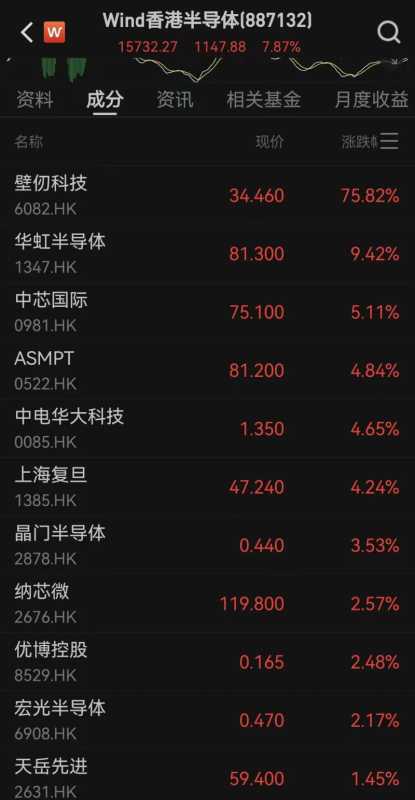 半导体板块涨幅居前,华虹半导体涨超9%,中芯国际涨超5%。