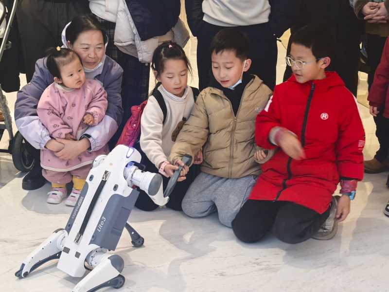 元旦假期,北辰荟购物中心的智能机器人4S店快闪店内熙熙攘攘,消费者簇拥在展示台前,与造型可爱的机器狗、智能机器人展开趣味互动。孩子们蹲在地上,略显生涩地操控着机器狗完成翻滚、跳跃等动作,家长们则纷纷举起手机,定格这些洋溢着节日快乐的精彩瞬间,这一幕,正是AI(人工智能)技术加速场景落地的生动写照。