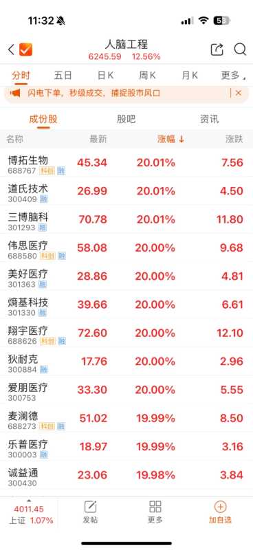 据新华社旧金山电,埃隆·马斯克2025年12月31日通过社交平台发布重磅消息,旗下脑机接口公司Neuralink计划于2026年启动脑机接口设备大规模量产,并同步推出全自动化外科手术流程。这一规划标志着脑机接口技术从临床验证阶段向产业化落地迈出关键一步,也成为A股人脑工程板块的强力催化,截至1月5日上午收盘,该板块指数大涨12.56%至6245.59点,超十只概念股收获“20CM”涨停。