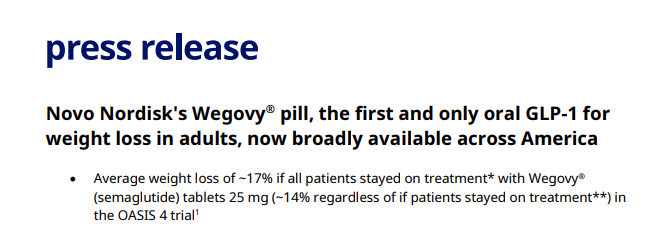 最高剂量的Wegovy口服片(25毫克)定价为每月299美元。而有保险覆盖的患者,最低只需每月25美元即可用药。诺和诺德表示,这款口服药的上市为超过1亿名肥胖的美国人“打开了新的可能性”。