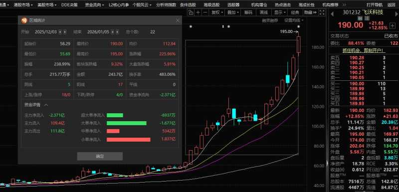 对于大涨后公司的基本面,飞沃科技也明确披露风险:“截至2026年1月5日,中证指数有限公司的最新数据显示,公司最新动态市盈率为232.90倍、市净率为10.12倍,公司所属中上协行业分类”C34通用设备制造业“对应的指数最新滚动市盈率为43.65倍、市净率3.72倍,公司动态市盈率和市净率明显高于同行业水平。”