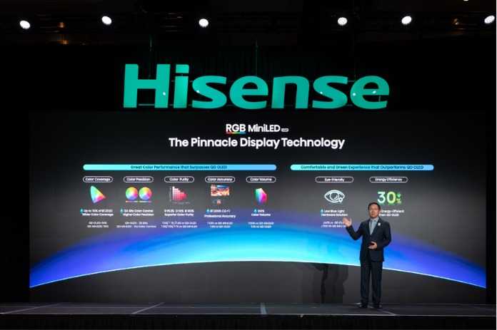 海信一年前开创并全球最先量产了RGB-Mini LED电视,这一创新技术随着全球TOP5电视品牌悉数布局,迅速成为全球高端电视的趋势热词。“RGB与Mini LED的结合,是一场颠覆性的变革。”海信视像科技总裁李炜在今年CES的展前发布会上表示,全新一代RGB-Mini LED技术带来了三大进化。