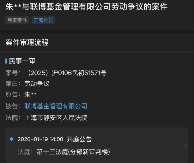 2025年12月,陈某因劳动争议起诉了华宝基金,案件将于1月19日开庭,陈某被指是已经离职的基金经理陈龙。与该案同一天开庭的还有外资公募联博基金,则是前副总与公司的对簿公堂。