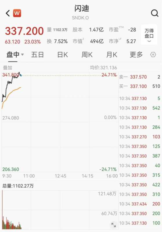 当地时间1月6日,美股存储概念股持续飙升,闪迪盘中涨超24%。美光科技盘中涨幅扩大至近8%,股价再创历史新高,总市值超3700亿美元。