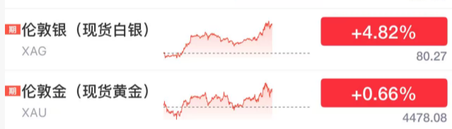 贵金属涨势延续,黄金价格上涨0.66%,白银价格上涨约5%。