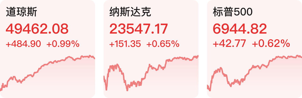 美股三大指数集体收涨,道指、标普500指数均创收盘历史新高,其中,道指涨0.99%,纳指涨0.65%,标普500指数涨0.62%。大型科技股涨跌不一,亚马逊涨超3%,微软、英特尔涨逾1%,Meta小幅上涨;特斯拉跌超4%,苹果跌超1%,英伟达、谷歌、奈飞小幅下跌。美股存储概念股集体大涨创新高,美光科技涨超10%,闪迪涨超27%,西部数据涨超16%,希捷科技涨14%。热门中概股多数下跌,纳斯达克中国金龙指数跌0.78%。禾赛涨超10%,小马智行涨逾5%,华住涨逾4%;BOSS直聘跌超6%,腾讯音乐跌逾4%,阿里巴巴跌超3%。