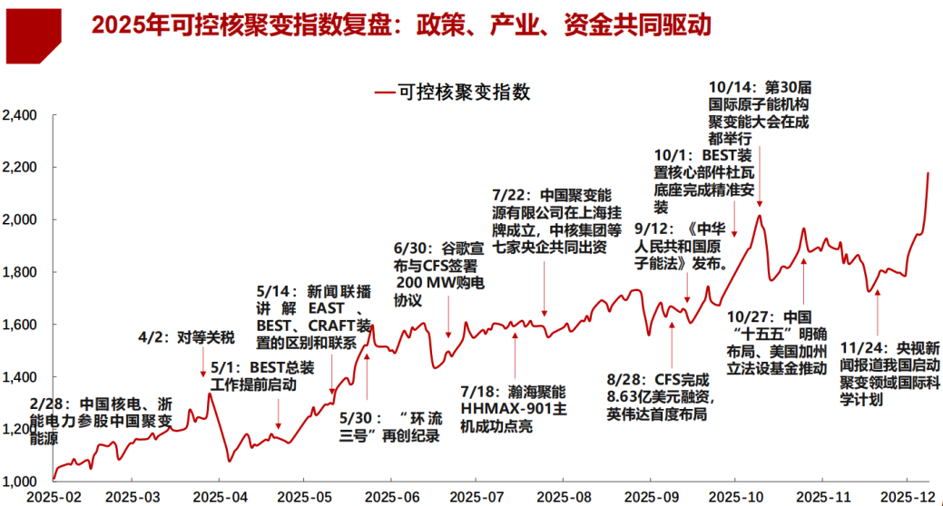国内方面,“十五五”规划将可控核聚变明确纳入国家未来产业体系,标志着其从前沿科学探索正式升级为战略性科技攻关方向。其作为清洁基荷能源,不仅能支撑高耗能产业降碳升级,还可衍生多领域应用,当前产业链上中下游协同突破,核心材料、关键设备与集成设计环节技术成熟度持续提升,为商业化奠定基础。