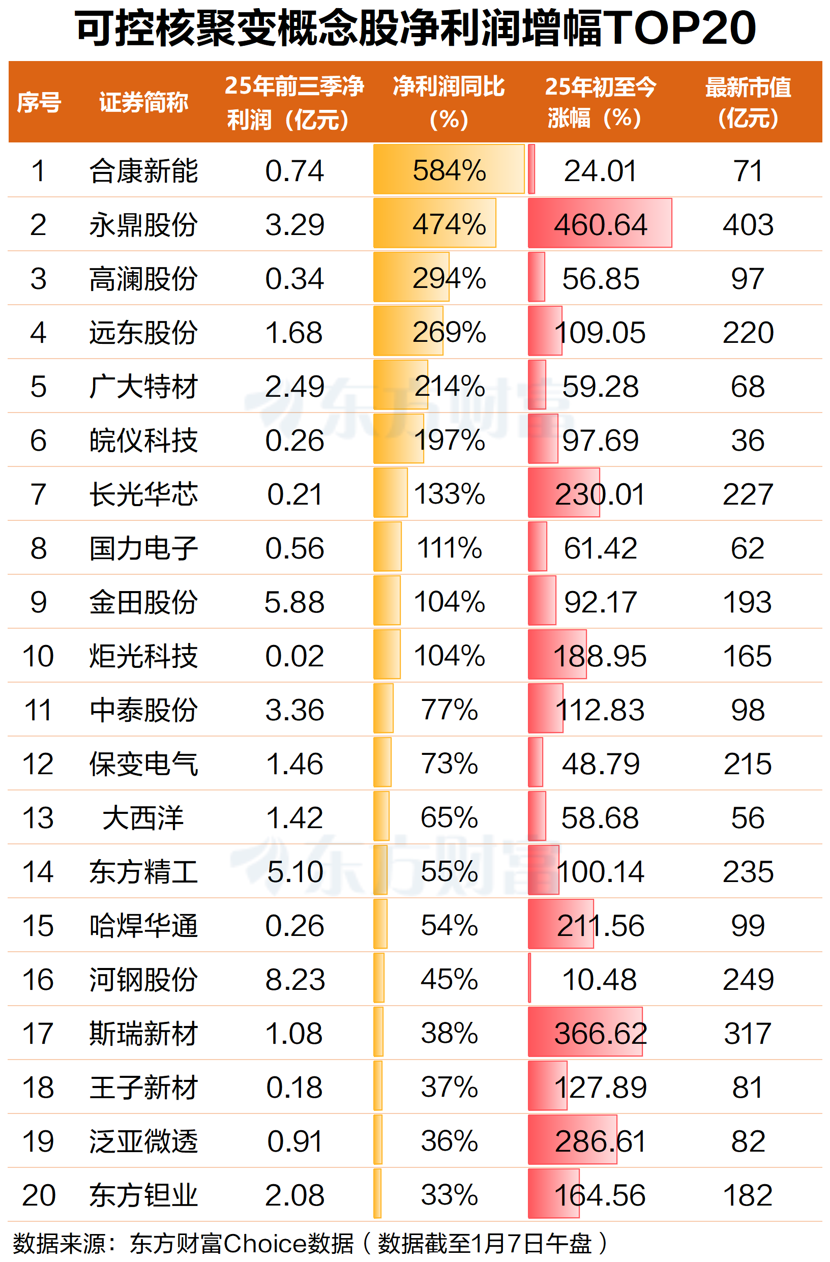 1月7日,可控核聚变概念低开高走,截至早间收盘,板块上涨3.44%。个股方面,天力复合涨超12%,弘讯科技、雪人集团、王子新材、中国核建、国机重装、中国西电、远东股份等多股涨停。值得一提的是,自2025年初至今,可控核聚变板块累计涨幅已超108%,达成了一年翻倍的成就。