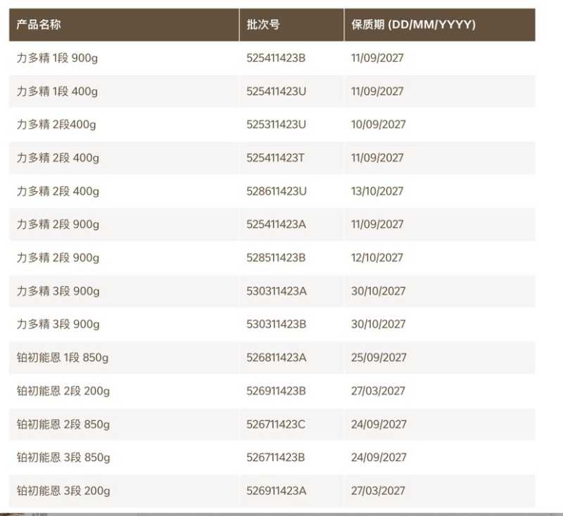 近日,全球食品巨头雀巢公司因主要供应商提供的ARA(花生四烯酸)原料被检出潜在质量问题,在欧洲多国主动发起预防性召回。雀巢中国方面随后确认,中国市场少数产品可能受到影响,已启动对部分特定批次婴幼儿配方奶粉的回收工作。截至雀巢官网,中国市场的召回涉及力多精、铂初能恩、舒宜能恩和惠氏膳儿加儿童成长奶粉共4个品牌,总计30个批次的产品。