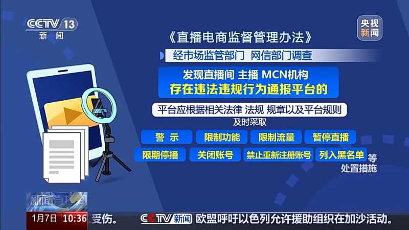 市场监管总局、国家网信办联合对外公布《直播电商监督管理办法》,在落实平台主体责任的同时,进一步明确了直播间运营者、主播和MCN机构等主体的法律责任。该办法旨在加强监管,维护消费者权益。