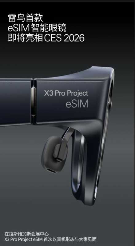 “下一部手机,何必是手机。”这是雷鸟创新首款eSlM智能眼镜的海报官宣语。在CES 2026上,雷鸟将首次以真机形态展示X3 Pro Project eSlM。
