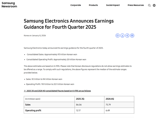 周四(1月8日),全球最大的内存芯片制造商三星电子发布了2025年第四季度初步业绩,显示受益于AI热潮下的存储芯片涨价潮,当季公司营业利润大幅增长,且好于市场预期。