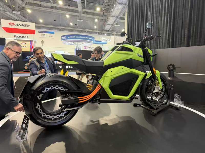 他指向展位中心的一辆摩托车对记者说,几个月内搭载该电池的Verge摩托车就会交付给用户。该摩托车的售价是35000美元。所有原本订购的顾客以为配备的是锂电池,但现在会为他们提供升级为全固态电池的选项。