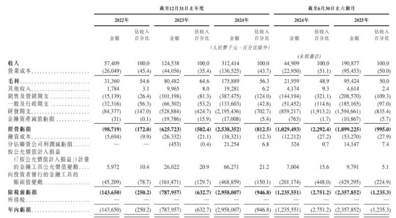业绩方面,2022年至2024年以及2025年上半年,智谱的营收分别为5740.9万元、1.25亿元、3.12亿元、1.91亿元。但营收高速增长的背后是持续扩大的亏损——同期公司净亏损分别为1.44亿、7.88亿、29.58亿元以及23.58亿元,三年半累计亏损超过62亿元。