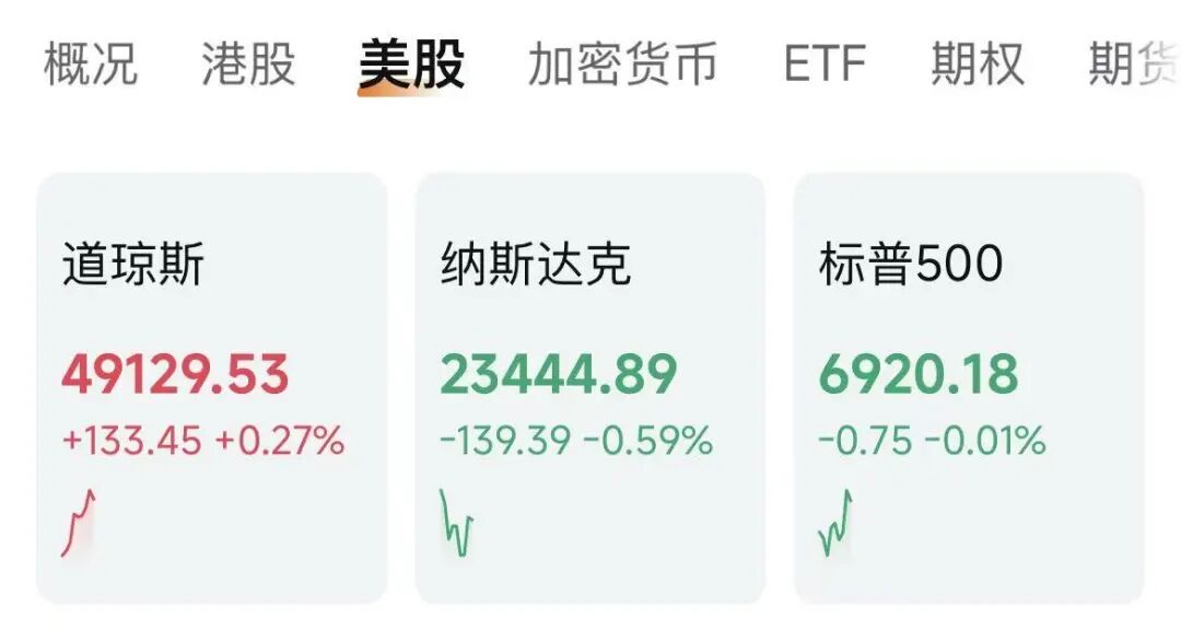 当地时间1月8日,美股三大指数集体低开,截至发稿,道琼斯指数涨0.27%,标普500指数跌0.01%,纳斯达克综合指数跌0.59%。