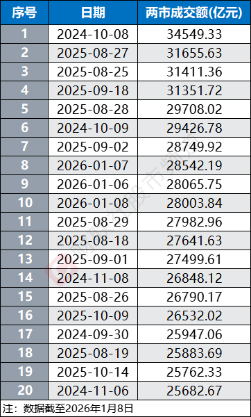 此前在2024年10月8日、2025年8月25日、8月27日和9月18日,两市成交额曾四次突破3万亿元。