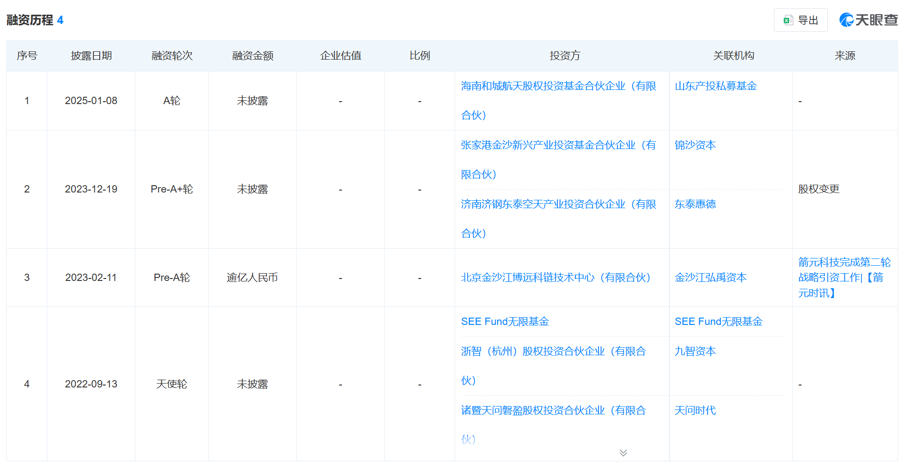 天眼查App显示,箭元科技已完成四轮融资,从投资方看,箭元科技不仅获得了金沙江资本、SEE Fund等知名创投公司的支持,同时也吸引了一众具有产业背景的国资的支持。