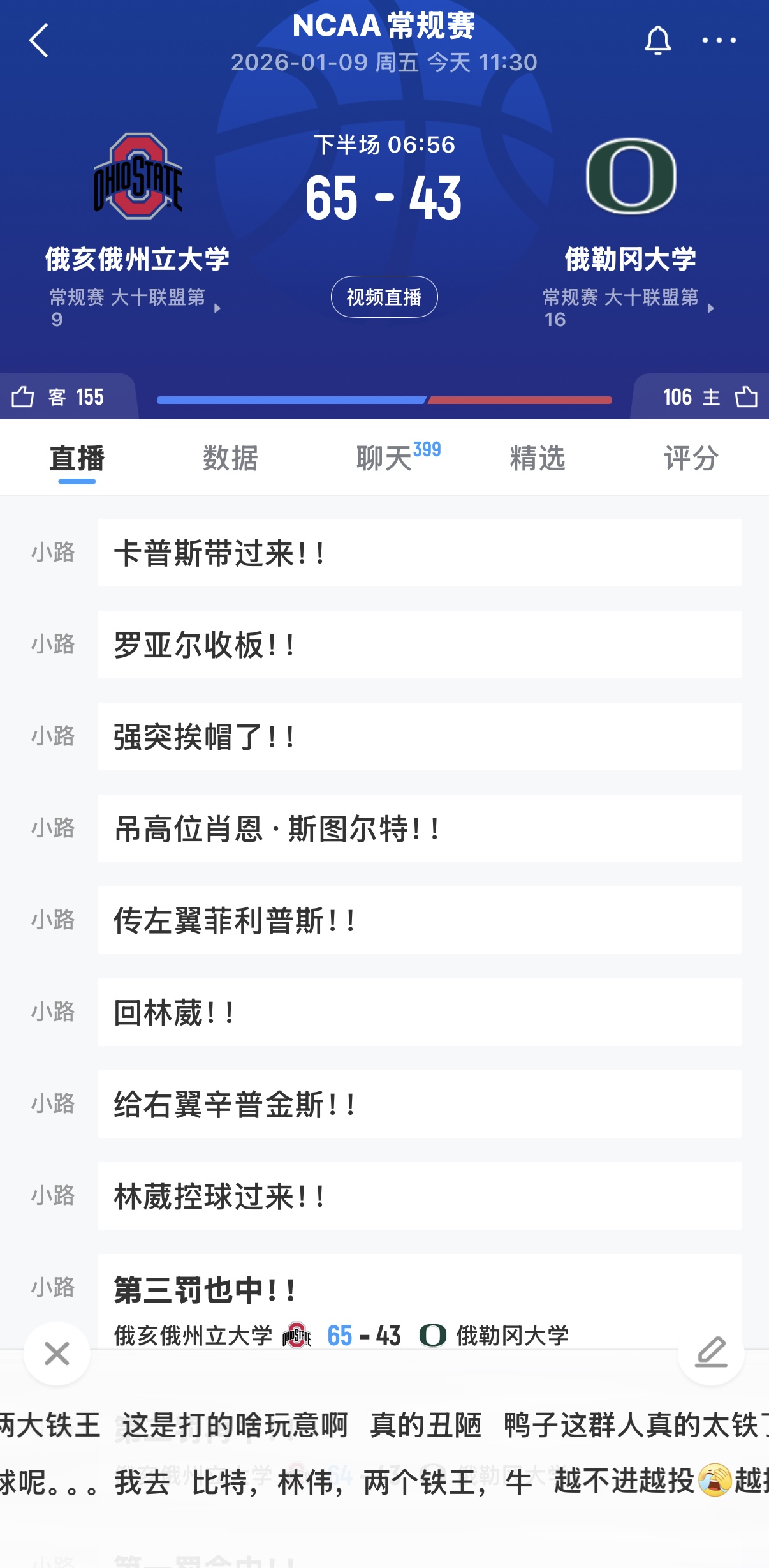 一NCAA常规赛“文字直播”区。图:截自“直播吧”App