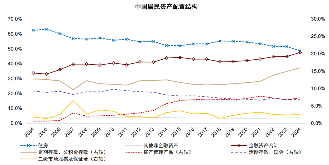 基于现阶段中国居民资产负债表的表现,我们认为在2026年居民具备风险偏好小幅上行的条件。考虑到消费意愿仍较弱、以及房地产需求有限,我们预计存款活化资金大概率流向投资领域;且2026年存款搬家后的资金多数仍将寻求偏稳健型的产品,短期内风险偏好提升的速率可能并不快。