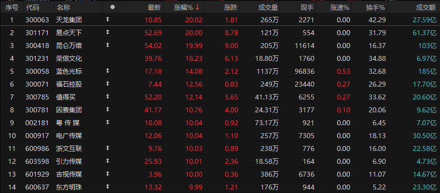 股市最新消息:春季行情展开 传媒游戏板块掀起涨停潮
