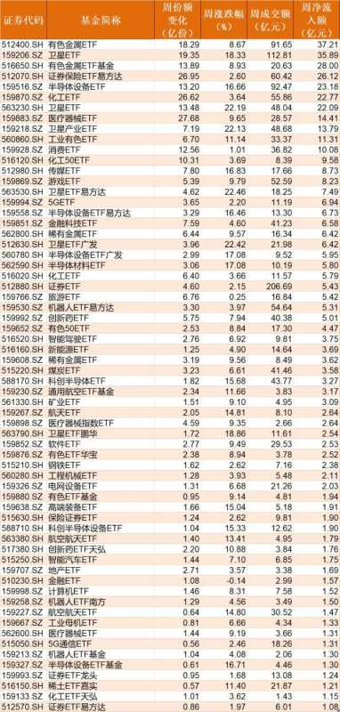 本周股市走势分析:有色、卫星等ETF受追捧