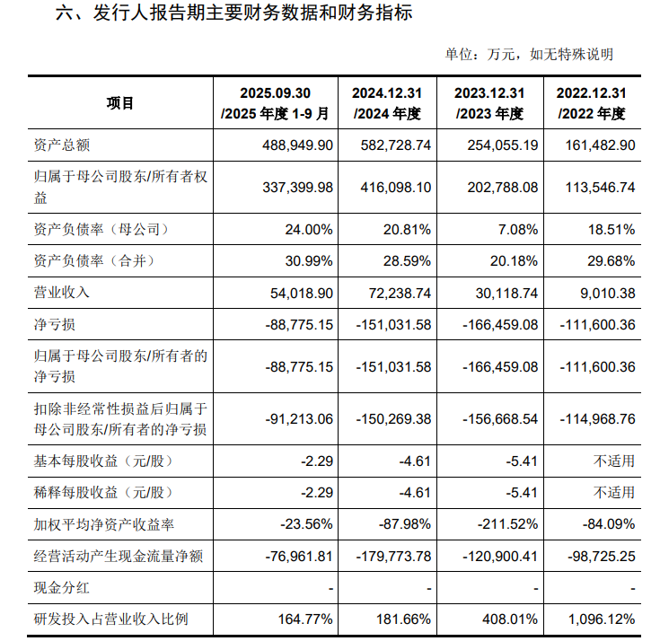 同时,由于云端AI芯片具有研发投入大、客户验证和适配周期长的特点,公司收入尚未充分释放,扣除非经常性损益后尚未实现盈利。2022年、2023年、2024年以及2025年1—9月,公司扣除非经常损益后净利润分别为-11.50亿元、-15.67亿元、-15.03亿元、-9.12亿元。