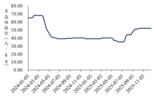 太平洋证券研报表示,2024年以来光伏产能严重过剩,行业报价持续走低、各行业持续亏损。在此背景下,破除“内卷式”竞争持续引起市场关注。2025年上半年,行业内卷情况持续,报价较为低迷,一二线企业持续亏损,随着2025年年中反内卷开启,行业竞争较为克制,报价持续修复至52元/kg。