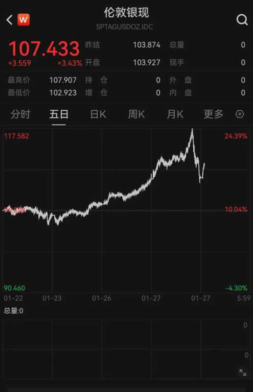 现货白银在创下2008年以来最大单日涨幅后迅速回吐涨幅,周一一度涨14%至每盎司117.75美元,刷新历史高位。美股收盘后则抹去日内所有涨幅转跌,最终涨幅不到1%。