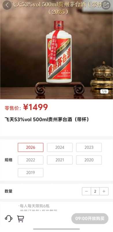 因上线1499元平价飞天茅台酒