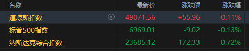 截至收盘,标普500指数跌0.13%,报6969.01点;纳斯达克综合指数跌0.72%,报23685.12点。盘中,两只指数分别一度跌1.5%和2.6%。