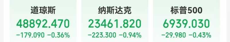 当地时间1月30日,美股三大指数收盘集体下跌,道指跌0.36%,纳指跌0.94%,标普500指数指数跌0.43%。