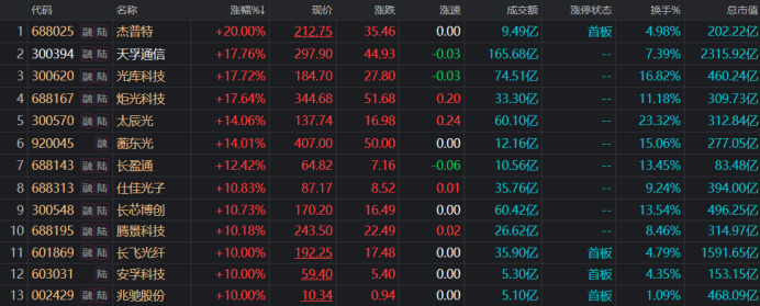 CPO概念股表现活跃 天孚通信大涨