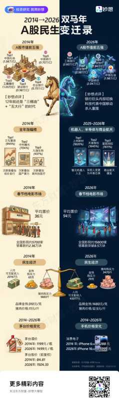 本文回顾了从2014到2026年间A股市场的变化,特别是科技力量的崛起对中国经济格局的影响。在此期间,银行巨头们依然稳居前列,但中国移动携2.04万亿市值杀入前五,科技力量开始重塑A股市场格局。同时,文章还探讨了民生层面的巨大变迁,包括收入增加、物价变化以及科技进步带来的性价比提升。