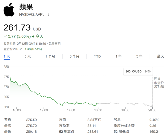苹果股价周四收盘下跌5%,单日市值蒸发2020亿美元(约合1.4万亿元人民币)。数据显示,这是苹果有史以来第二大单日市值缩水,仅次于2025年4月3日因关税担忧导致的3110亿美元市值蒸发规模。