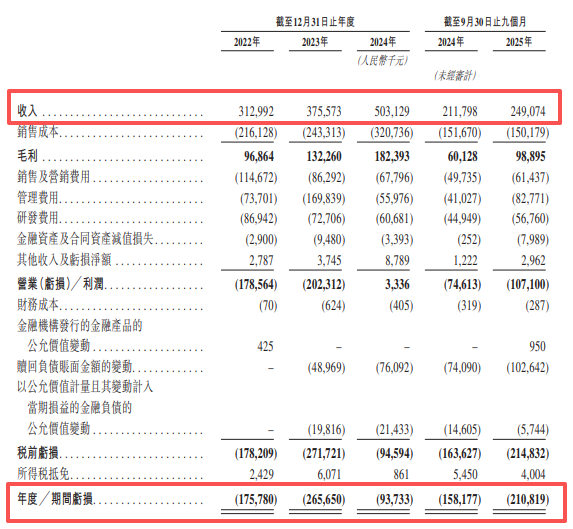 财务表现上,海致科技集团的营业收入由2022年的3.13亿元(人民币,下同)增至2024年的5.03亿元,复合年增长率为26.8%;来自Atlas智能体的收入由2023年的890万元增至2024年的8660万元,增幅达872.2%。2022年至2024年,海致科技集团分别净亏损1.758亿元、2.657亿元、9373万元;2025年前九个月,公司亏损2.108亿元。