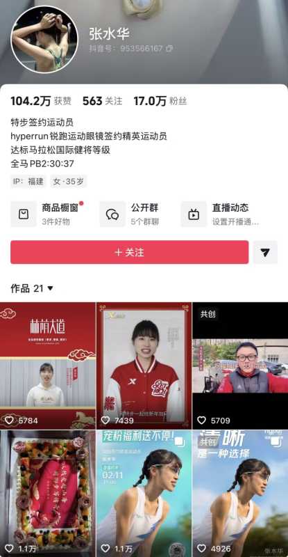 在特步官方微博号发布的“红运开局,配速拉满,特步携田径群星祝大家阔步迎新”的短视频中,张水华作为签约运动员首次亮相。