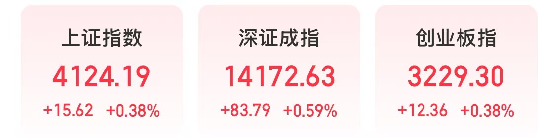 今天,A股上涨。截至收盘,上证指数上涨0.38%,深证成指上涨0.59%,创业板指上涨0.38%。