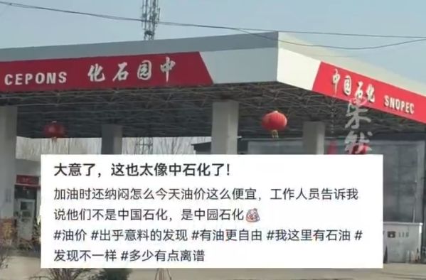 形状颜色内容等与正规中国石化加油站模仿得非常像,大家一定要看清品牌立柱上的内容,再进站。