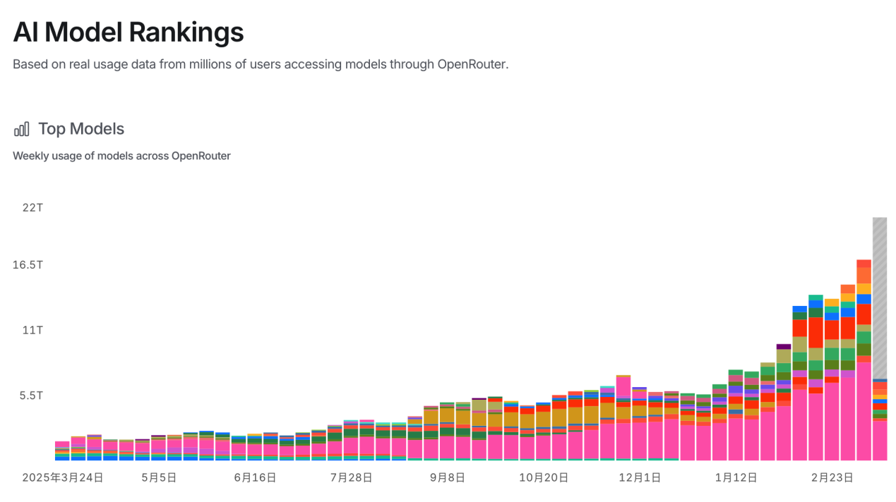 数据来源:Open Router,截止2026年3月18日